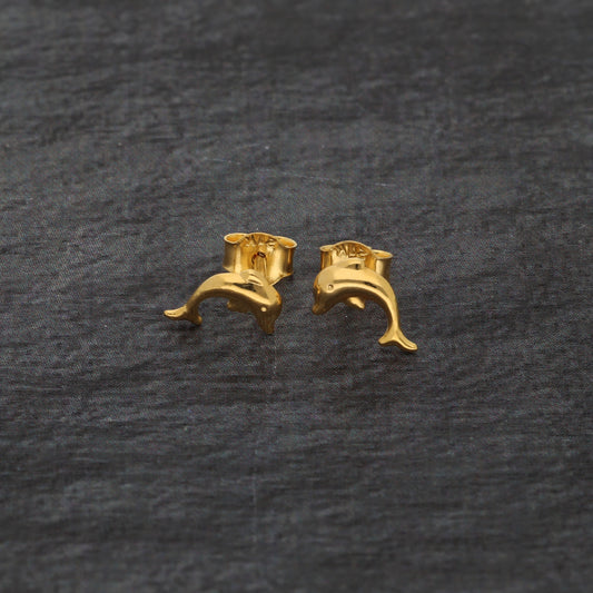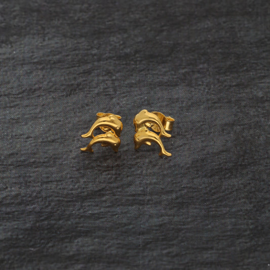 Gold Dolphin Shaped Stud Clip Earrings 21KT - FKJERN21KM9593
