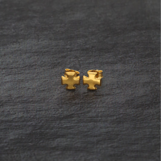 Gold Plus Sign Shaped Stud Clip Earrings 21KT - FKJERN21KM9592