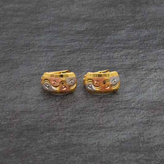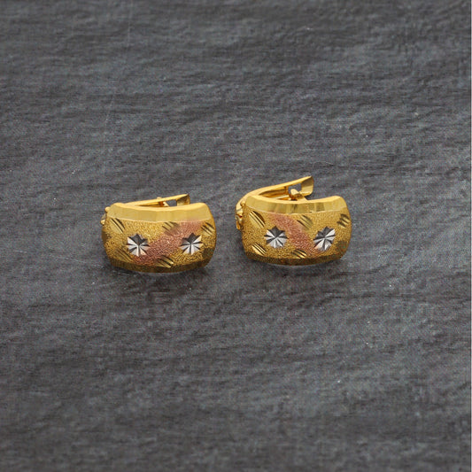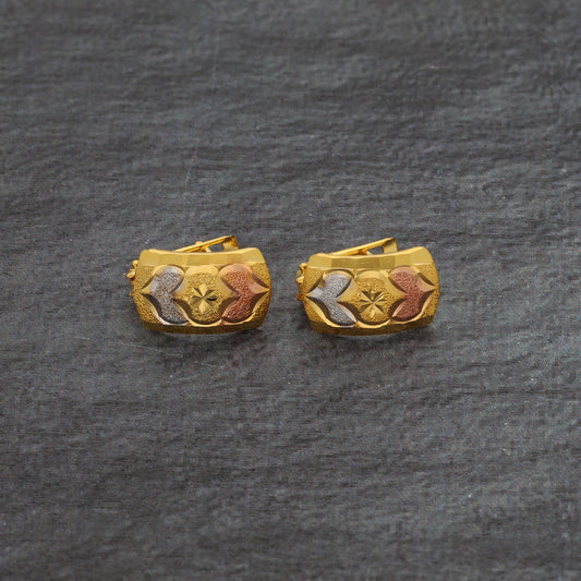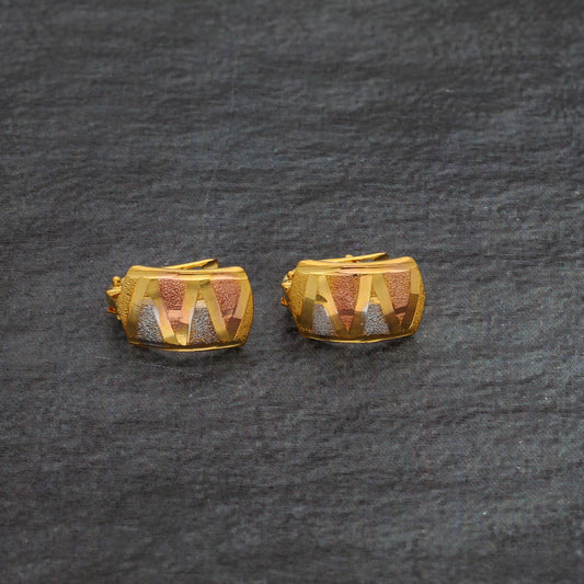Gold Triple Tone Clip Earrings 21KT - FKJERN21KM9847
