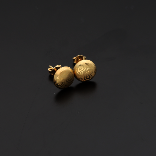 Gold Round Shaped Design Earrings 18KT - FKJERN18K8945