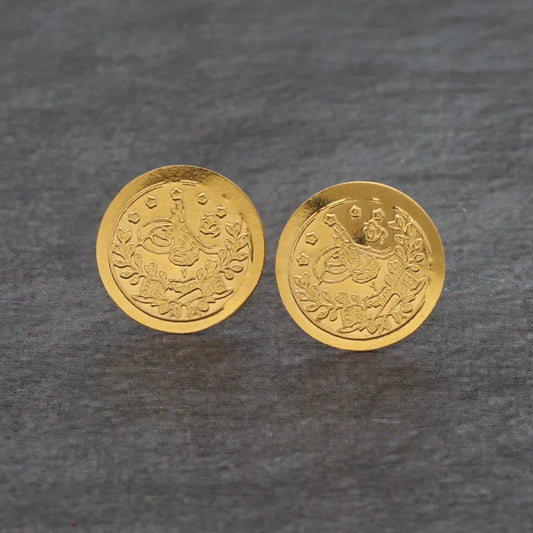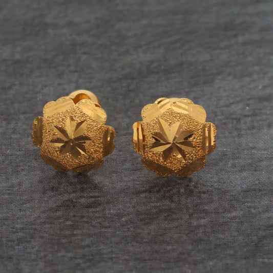 Gold Round Shaped Stud Earrings 21KT - FKJERN21KM8629