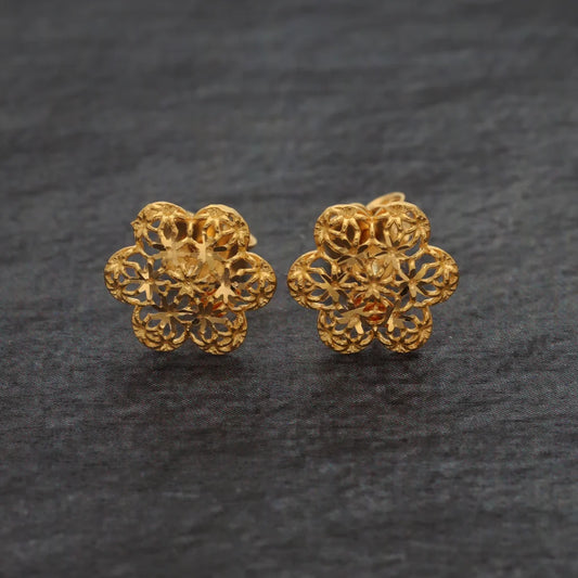 Gold Designer Stud Flower Earrings 21KT - FKJERN21KM8621