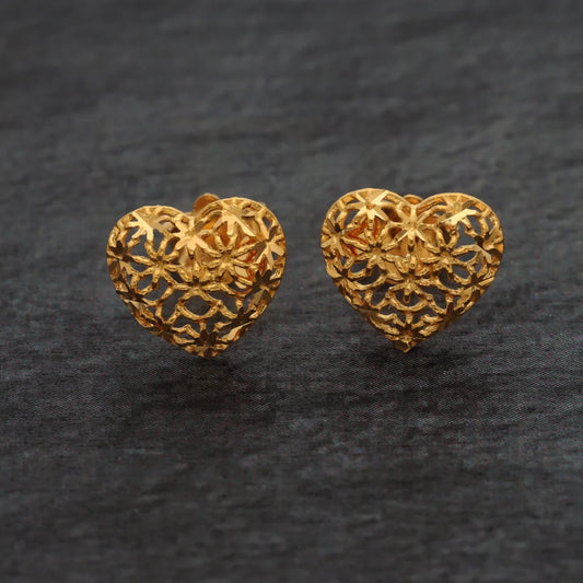 Gold Heart Shaped Earrings 21KT - FKJERN21KM8492