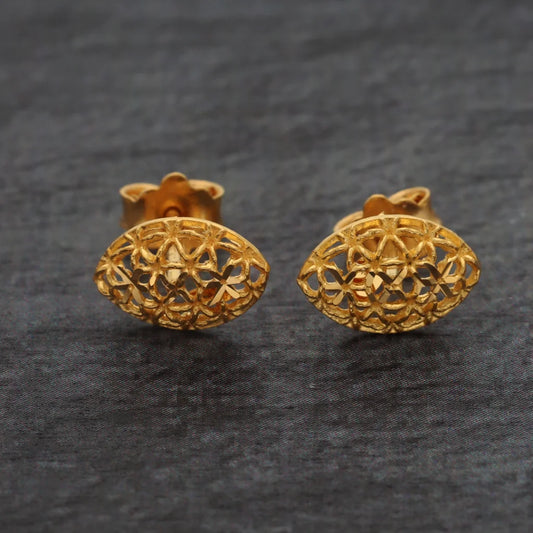 Gold Designer Oval Shaped Stud Earrings 21KT - FKJERN21KM8622