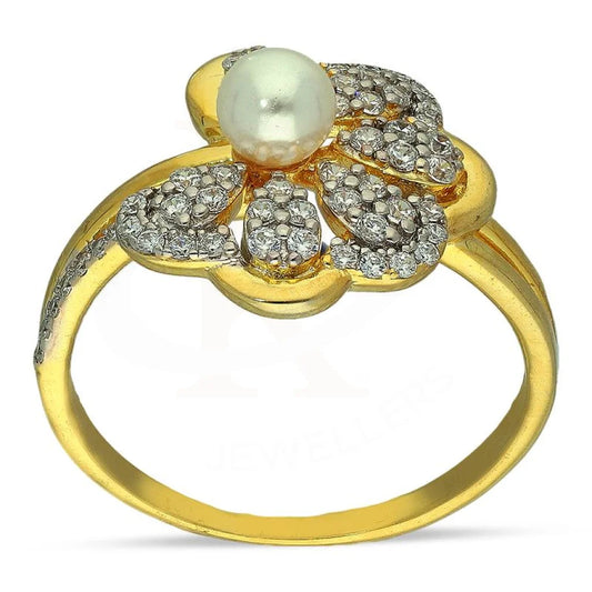 Sterling Silver 925 Gold Plated Flower Shaped with Pearl Ring - FKJRNSL2259
