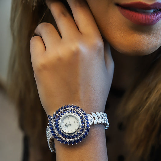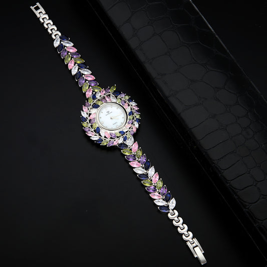 Sterling Silver 925 Elegance Redefined Gemstone Women Wrist Watch - FKJWHSL9630