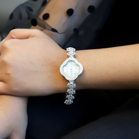 Sterling Silver 925 Elegant Stylish Flower Women Wrist Watch - FKJWHSL9626