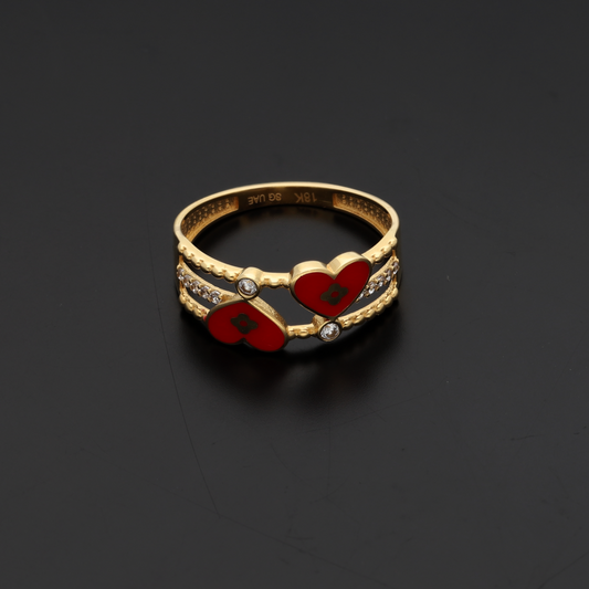 Gold Twin Heart Shaped Ring 18KT - FKJRN18K9226