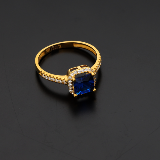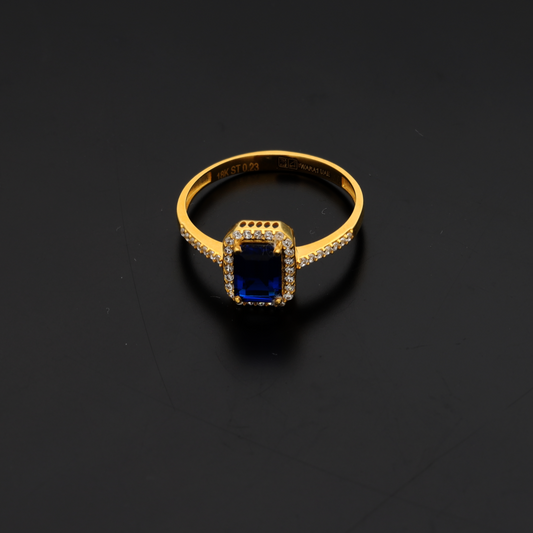 Gold Emerald Cut Blue Sapphire Zirconia Ring 18KT - FKJRN18K9229