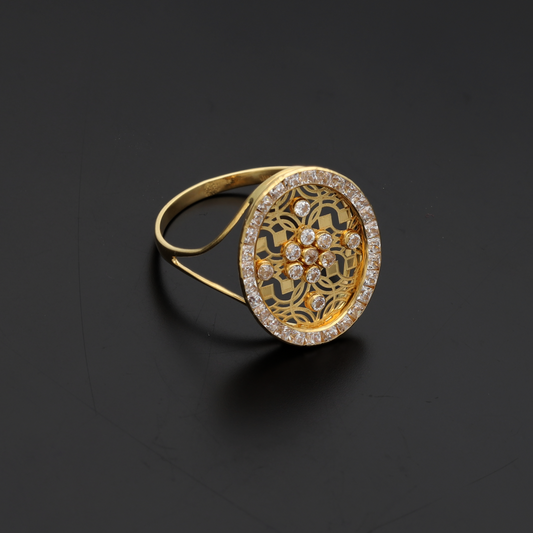Gold Classic Round Design Zircon Ring 18KT - FKJRN18K9232