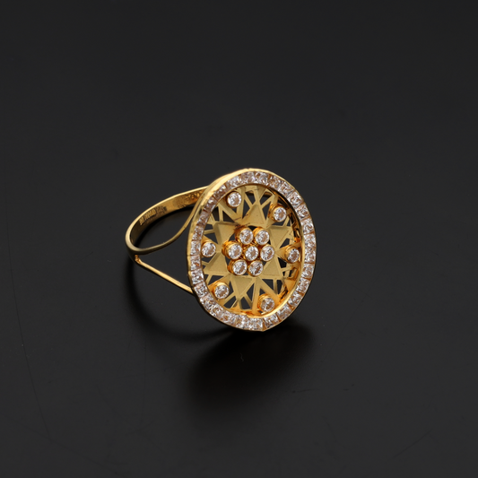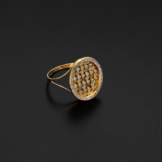 Gold Classic Round Design Zircon Ring 18KT - FKJRN18K9234
