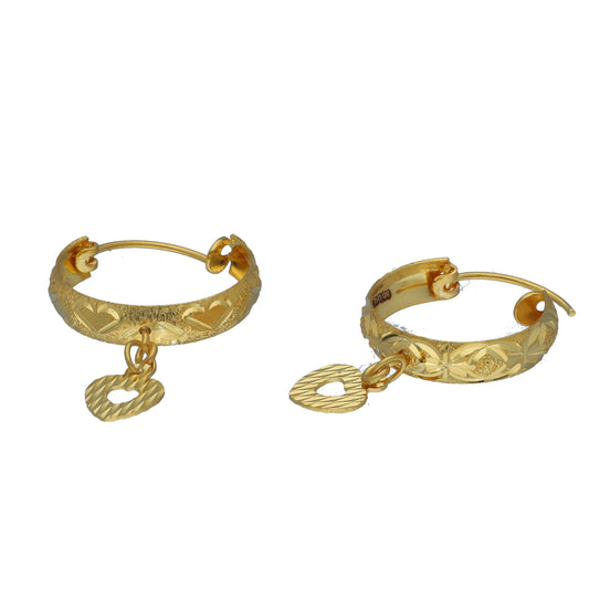 Gold Heart Drop Earrings 21KT - FKJERN21KM11377