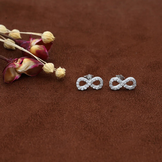 Sterling Silver 925 Cubic Zirconia Infinity Shaped Earrings - FKJERNSL8007