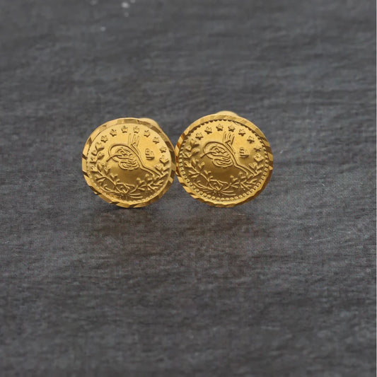 Gold Round Shaped Stud Earrings 21KT - FKJERN21KM8625