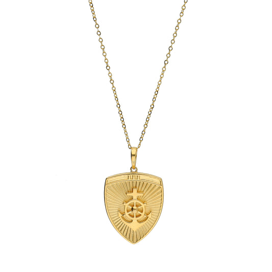 Gold Maritime Shield Necklace 21KT - FKJNKL21KM11333