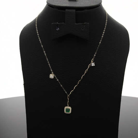 Gold Square Shaped with Square Solitaire Necklace 18KT - FKJNKL18K9158