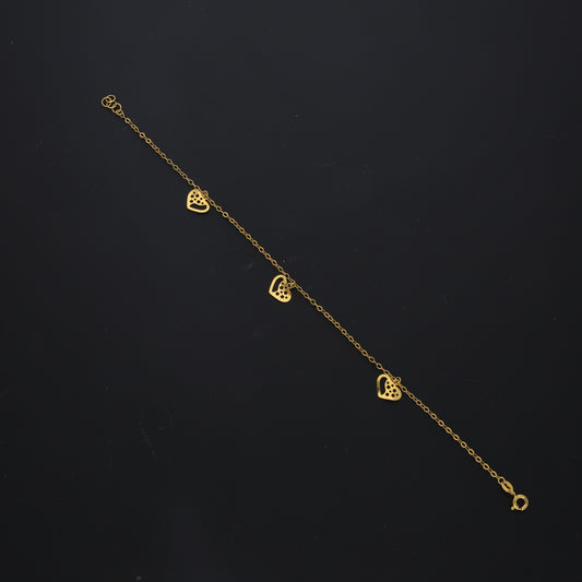 Gold Triple Heart Motif Bracelet 21KT - FKJBRL21KM10519
