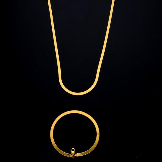 Gold Sleek Flat Chain Set (Chain with Bracelet) 21KT - FKJCNST21KM10382