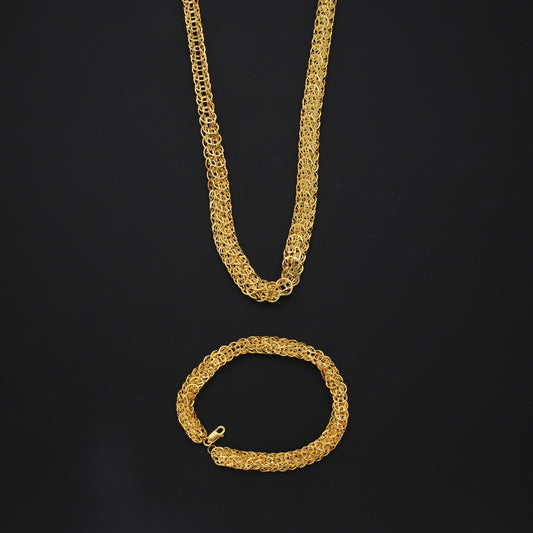 Gold Elegant Mesh Chain Set (Chain with Bracelet) 21KT - FKJCNST21KM10383