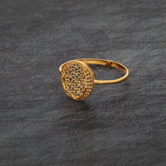 Gold Traditional Round Filigree Ring 21KT - FKJRN21KM9674