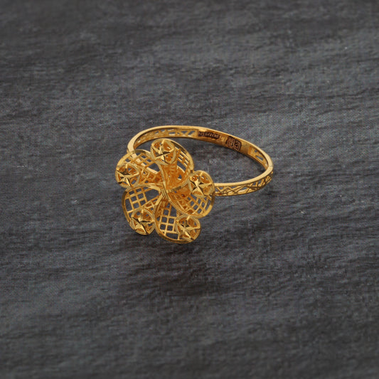 Gold Traditional Flower Design Ring 21KT - FKJRN21KM9681