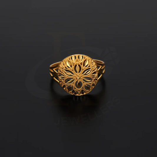 Gold Round Floral Design Ring 21KT - FKJRN21KM8548