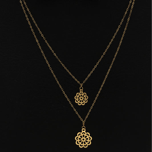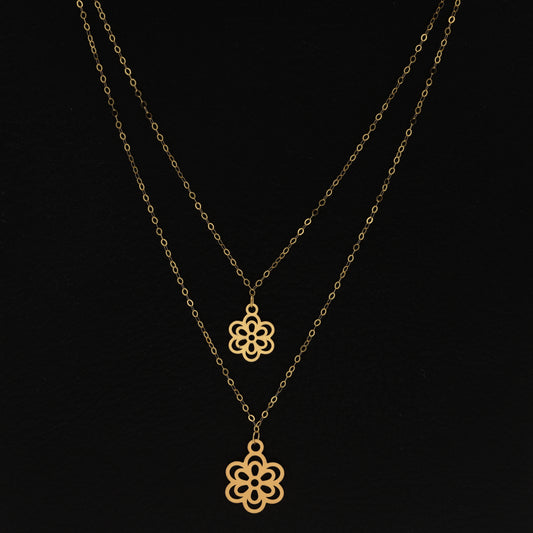 Gold Double Layered Flower Shaped Necklace 21KT - FKJNKL21KM9786