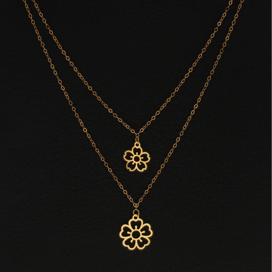 Gold Double Layered Cherry Blossoms Shaped Necklace 21KT - FKJNKL21KM9796