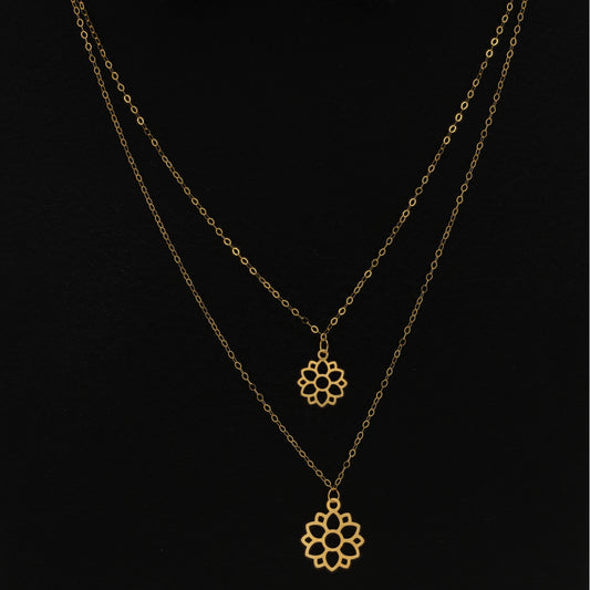 Gold Double Layered Lotus Flower Shaped Necklace 21KT - FKJNKL21KM9793