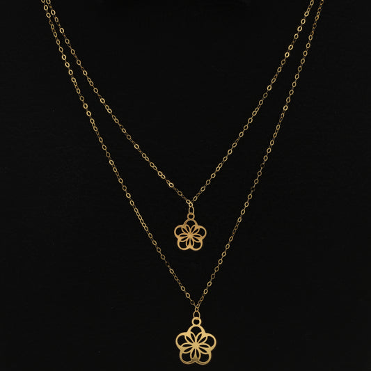 Gold Double Layered Fancy Flower Shaped Necklace 21KT - FKJNKL21KM9794