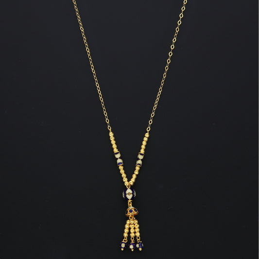 Gold Necklace (Chain with Beads & Turkish Lira Pendant) 21KT - FKJNKL21KM10344