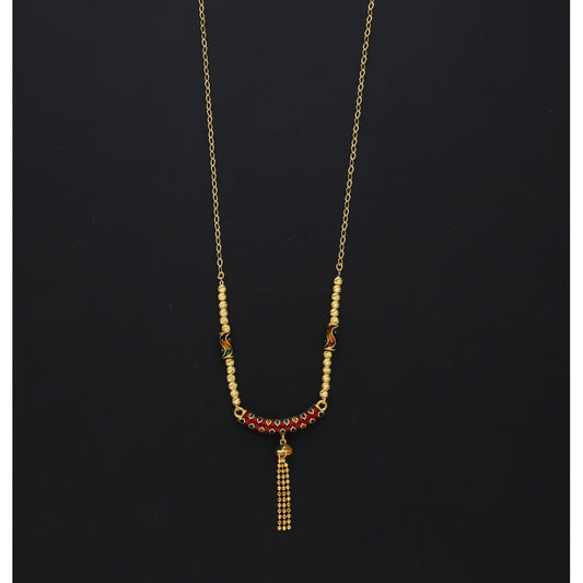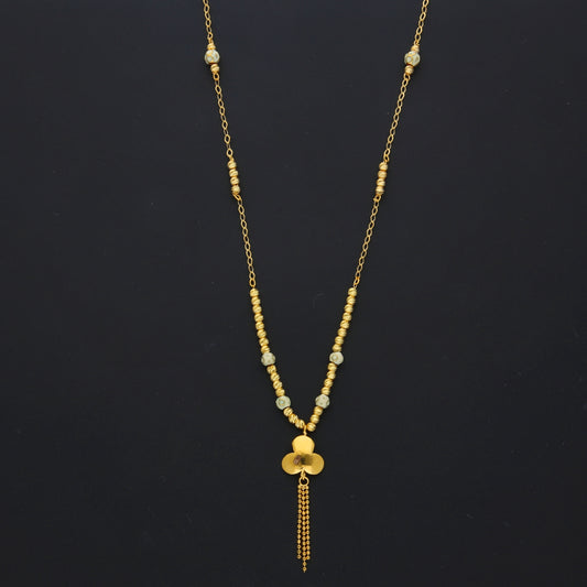 Gold Necklace (Beaded Chain with Rose Motif Pendant) 21KT - FKJNKL21KM10181