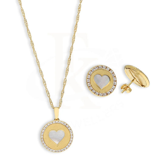Gold Round Shaped with Heart Pendant Set (Necklace and Earrings) 18KT - FKJNKLST18K5560