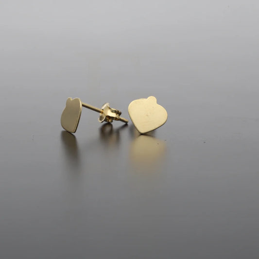 Gold Round Heart Shaped Stud Earrings 18KT - FKJERN18K7830