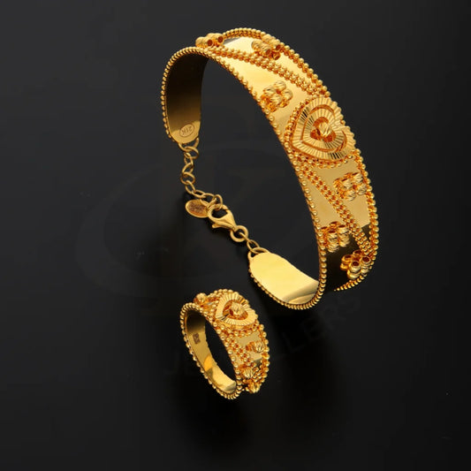 Gold Heart Design Bangle Set (Bangle and Ring) 21KT - FKJSET21KM8683