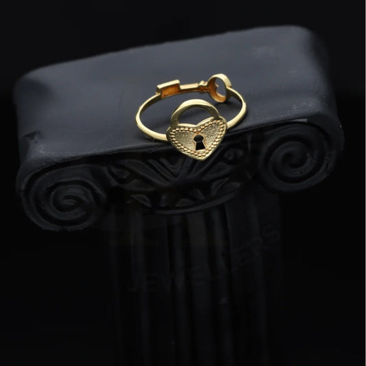 Gold Heart Lock Shaped Ring 18KT - FKJRN18K7913