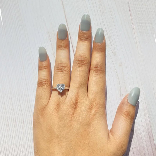 Sterling Silver 925 Heart Shaped Solitaire Ring - FKJRNSL3487