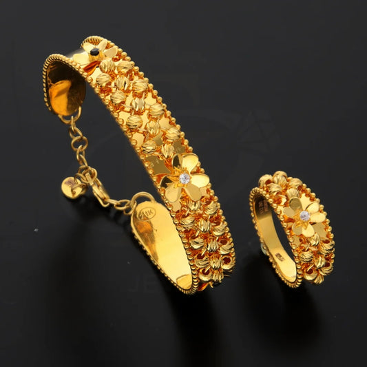 Gold Flower Stud Design Bangle Set (Bangle and Ring) 21KT - FKJSET21KM8684