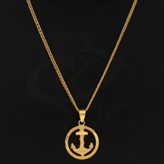 Gold Necklace (Chain With Anchor in Circle Pendant) 21KT - FKJNKL21KM8606