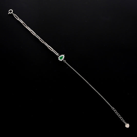 Sterling Silver 925 Green Sparkling Heart Bracelet - FKJBRLSL10546