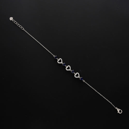 Sterling Silver 925 Blue Sparkling Heart Bracelet - FKJBRLSL10543