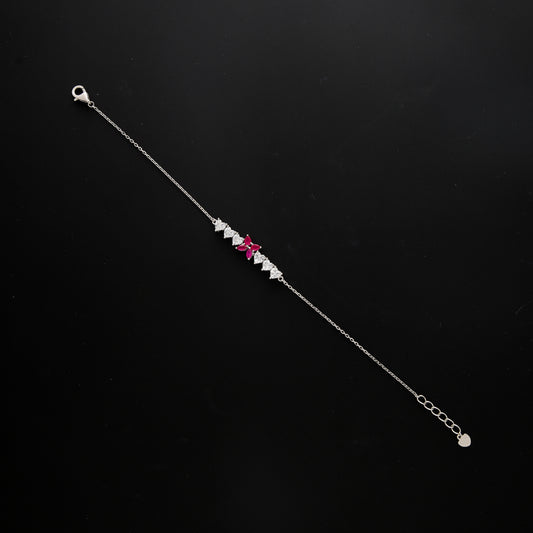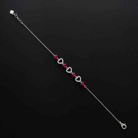 Sterling Silver 925 Pink Sparkling Heart Bracelet - FKJBRLSL10545