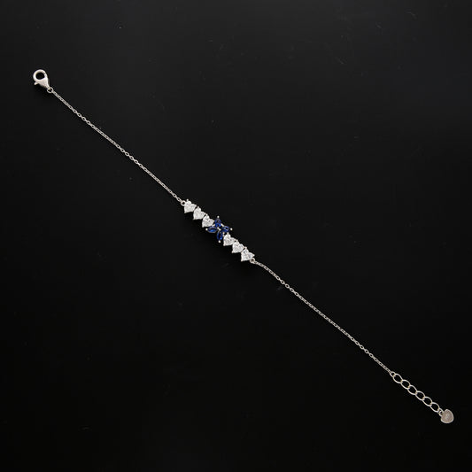 Sterling Silver 925 Blue Sparkling Heart Bracelet - FKJBRLSL10547