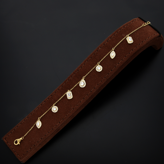 Gold Zirconia Round Shaped Bracelet 21KT - FKJBRL21K2913