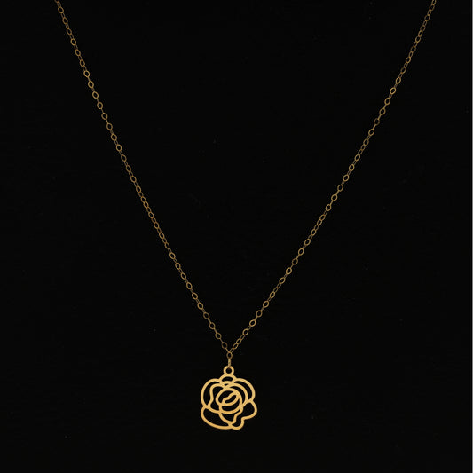 Gold Necklace (Chain With Hollow Rose Shaped Pendant) 21KT - FKJNKL21KM9779