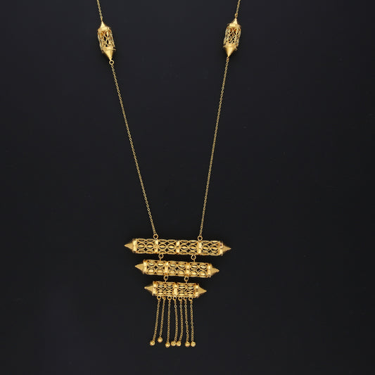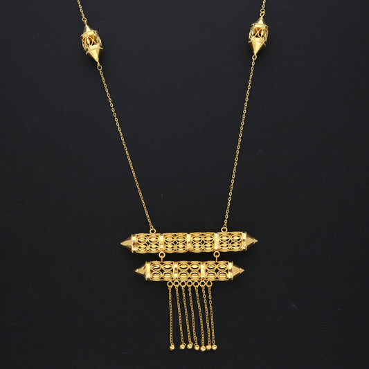 Gold Royal Pillar Filigree Necklace 21KT - FKJNKL21KM10373