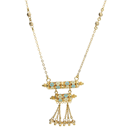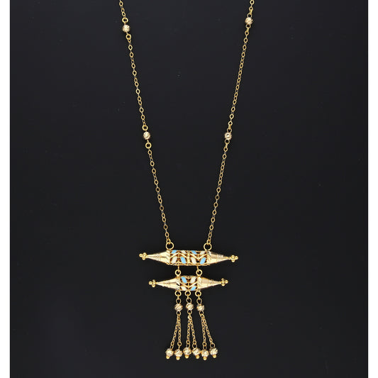 Gold Turquoise Charm Dangler Necklace 21KT - FKJNKL21KM10372