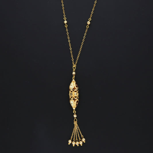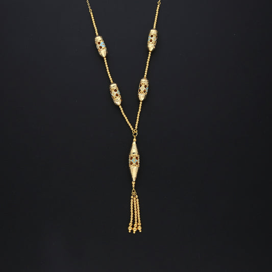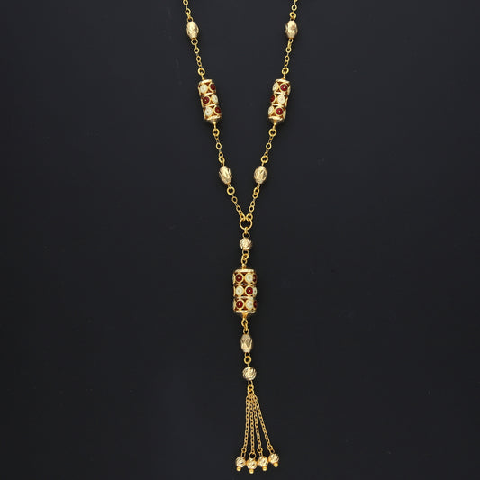 Gold Beaded Tassel Necklace 21KT - FKJNKL21KM10363
