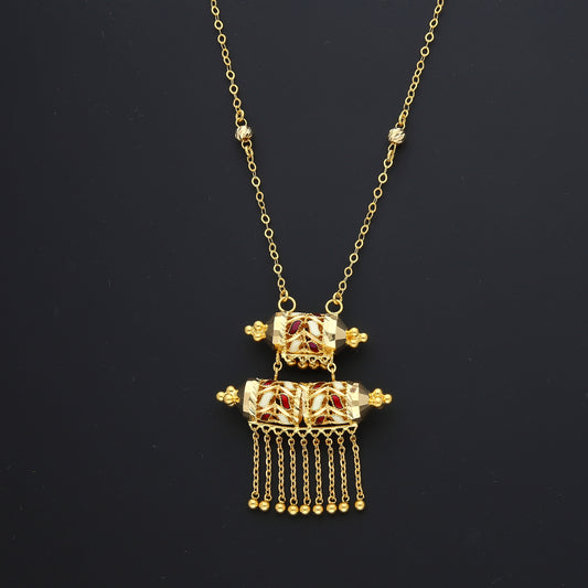 Gold Heritage Ladder Tassel Necklace 21KT - FKJNKL21KM10371