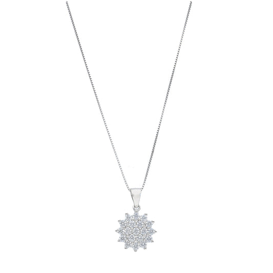 Sterling Silver 925 Round Halo Necklace (Chain with Pendant) - FKJNKLSL11094